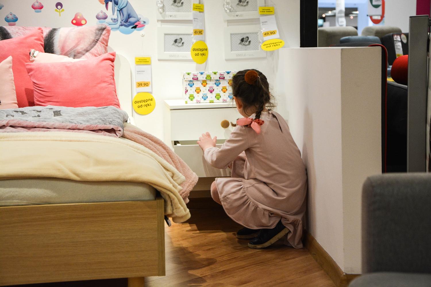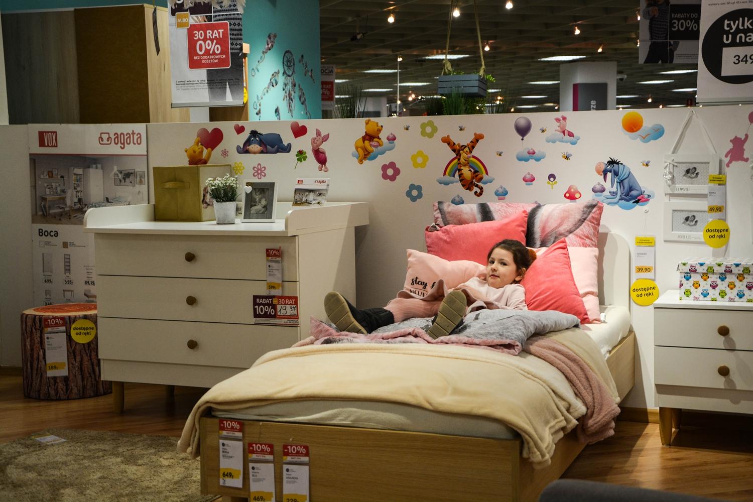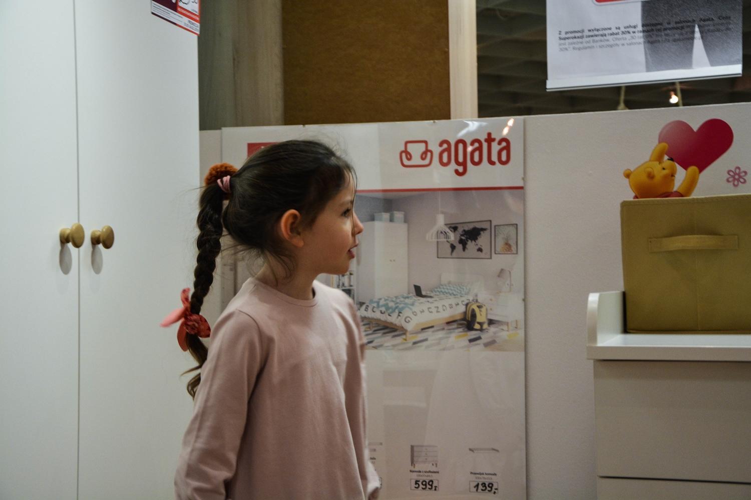 Przede mną jeszcze urządzanie sypialni. I tutaj muszę przyznać, że jestem zaskoczona ilością wszystkiego w salonie salonie Agata i tak dobrą jakością wszystkich mebli i dodatków. Przepiękne łóżka, w różnych stylach - cudowne stoliki nocne, piękne lampki. Świetne szafy, które mogą w sypialni robić nam za mini-garderobę. Jeśli ktoś jest na etapie urządzania sypialni, to w salonie na pewno wybierze odpowiedni dla siebei materac, łóżko i inne potrzebne meble. Wczoraj widziałam jak ludzie testowali, siadali, a nawet tak jak Pola - kładli się. Trochę czasu trzeba w takim sklepie spędzić, ale myślę, że lepiej mieć taki wybór, niż nie mieć go wcale, lub wybierać między trzema modelami łóżka, z których żadne to do końca nie jest to.