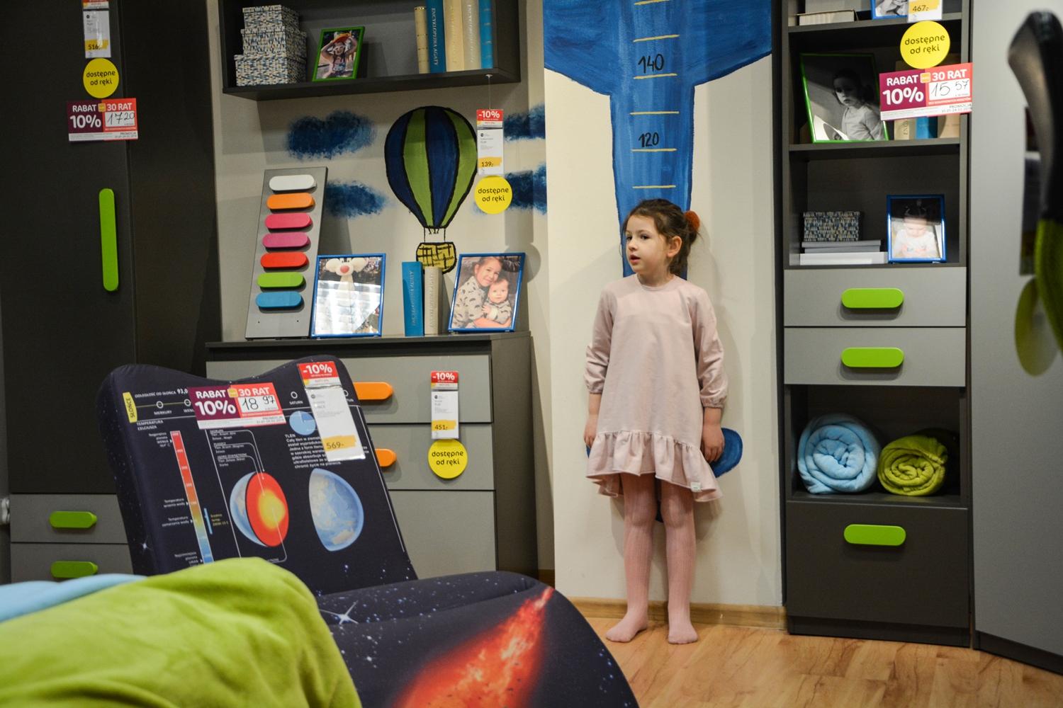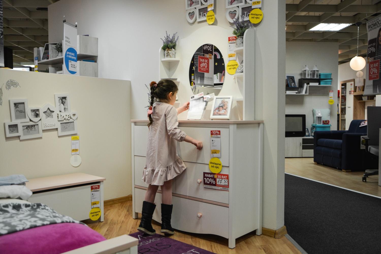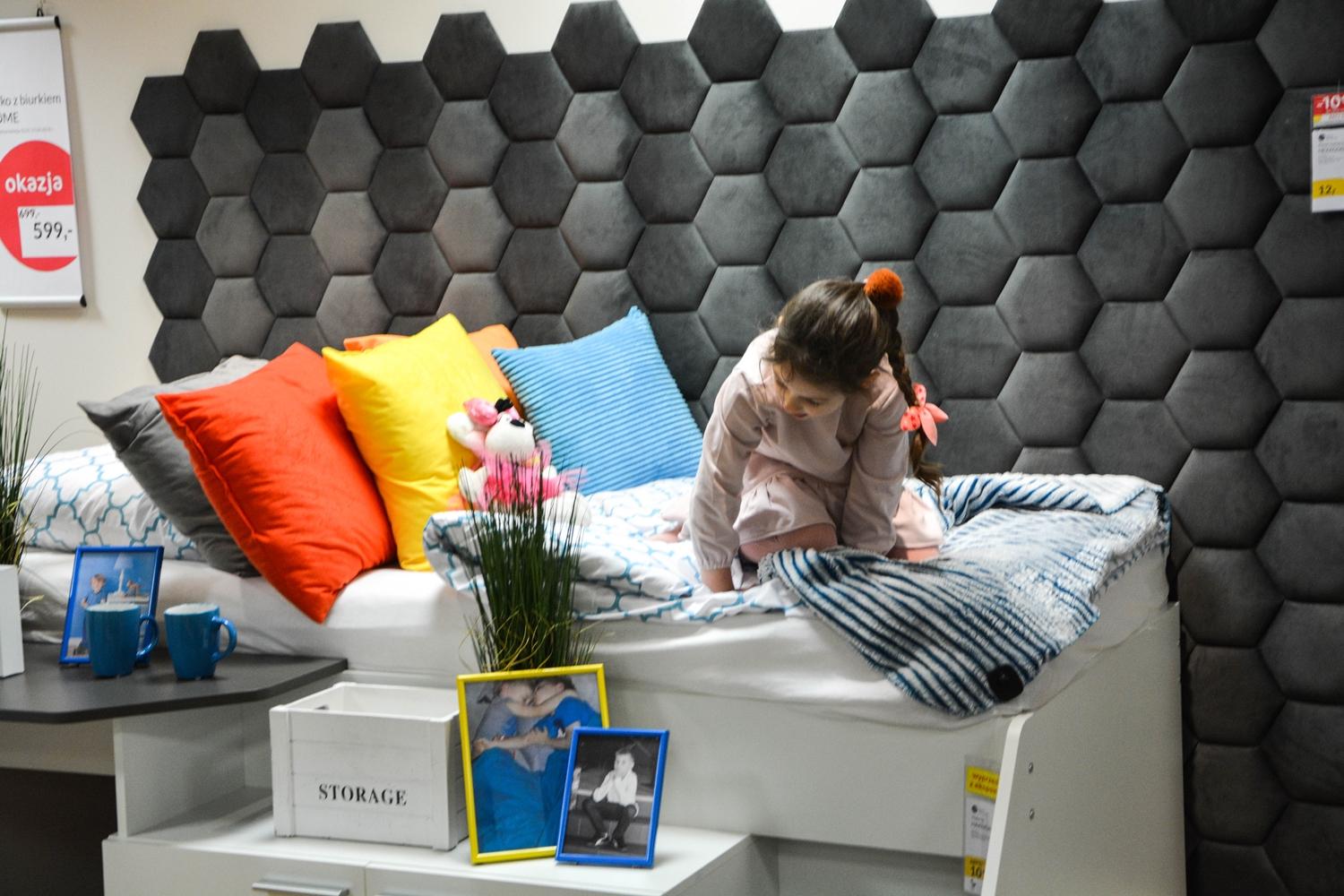 My wybrałyśmy się stricte po łóżko, ale właściwie skupiłyśmy się na wszystkim poza łóżkiem haha :P Pokój Poli nie jest za duży i szczerze mówiąc wstawienie tam porządnego łóżka mnie nieco przeraża. Więc może najpierw to krzesełko. Jest o tyle dobrze, że upatrzyłyśmy nie tylko krzesełko ( fajnie, że Pola potestowała i będę mieć pewność, że będzie dla niej wygodne), ale też półki na ściany i mega fajne milusie heksagony.